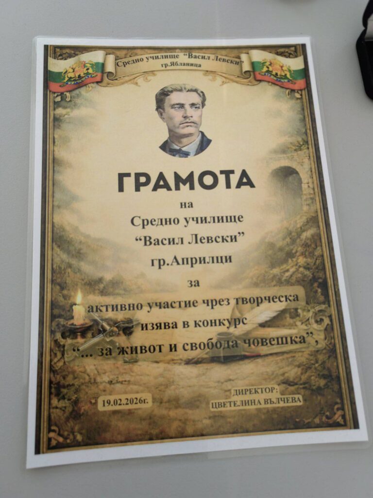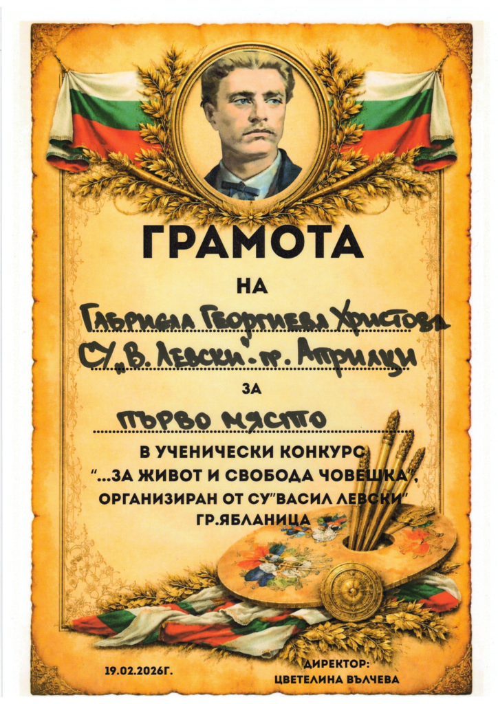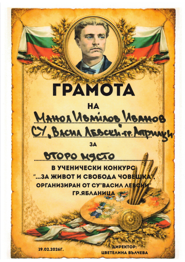 Освен индивидуалните отличия, нашето училище получи и поощрителна грамота за активно участие в конкурса.![]()